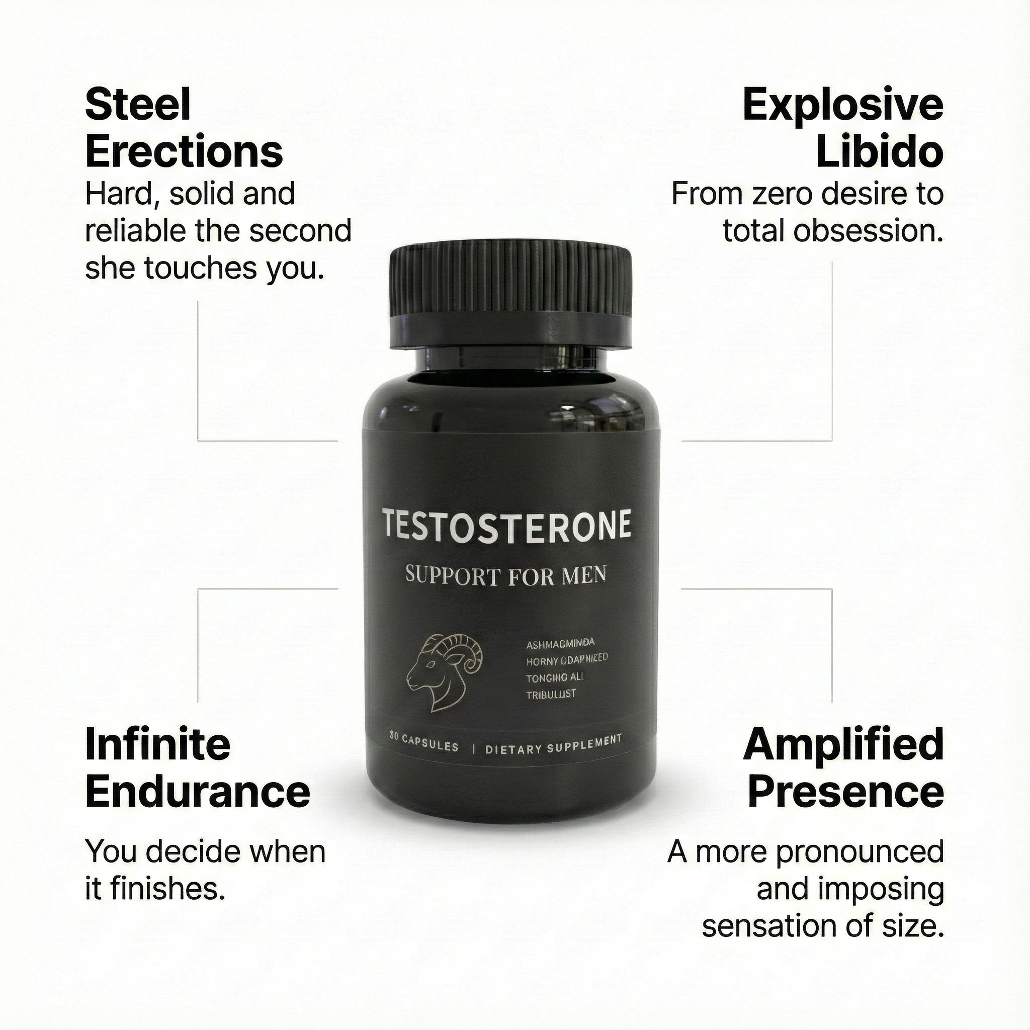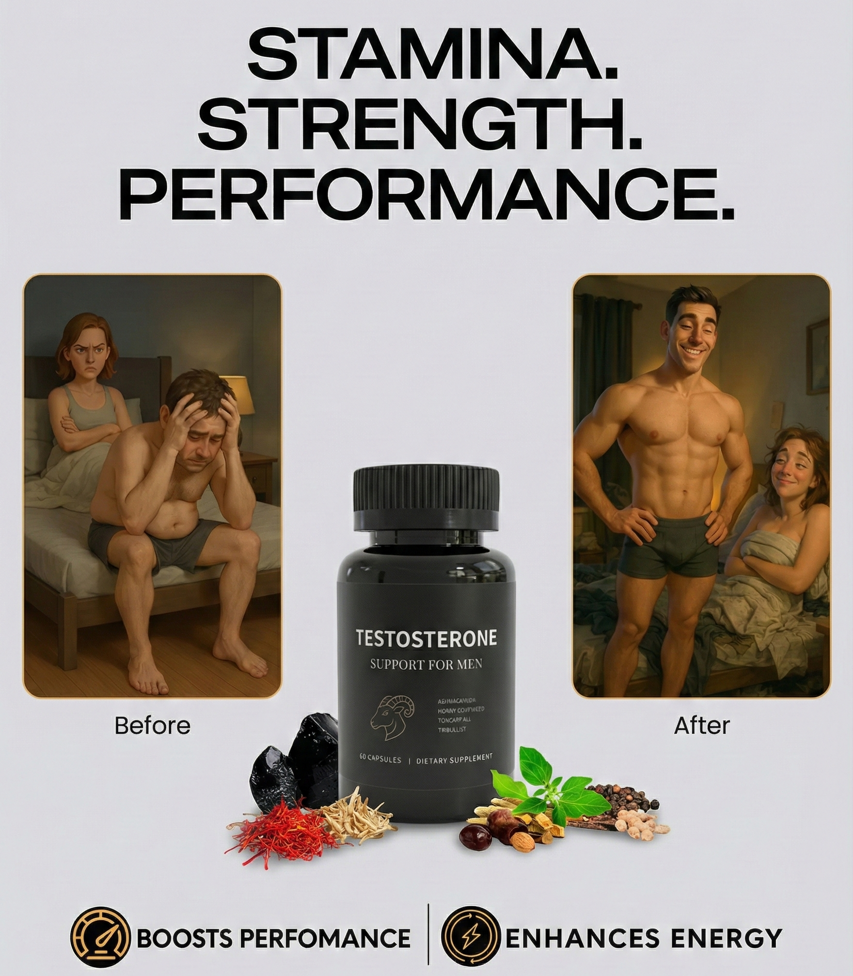 The full, optimal effects on libido, bedroom performance, and physical power typically kick in between weeks 4–6 of consistent use — this is the time it takes for the active compounds to fully saturate and rebuild your natural reserves.